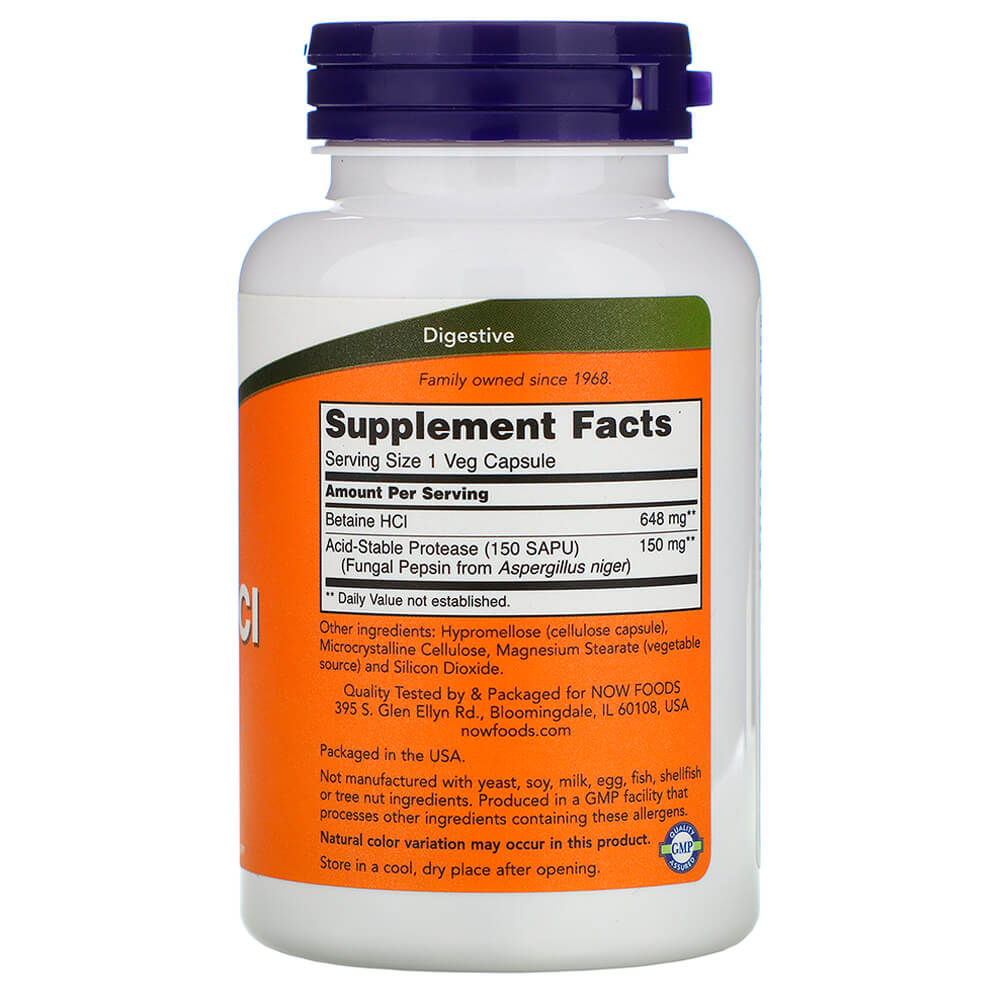 NOW Нормалізація кислотності шлунка Betaine HCI 648 mg 120 vcaps