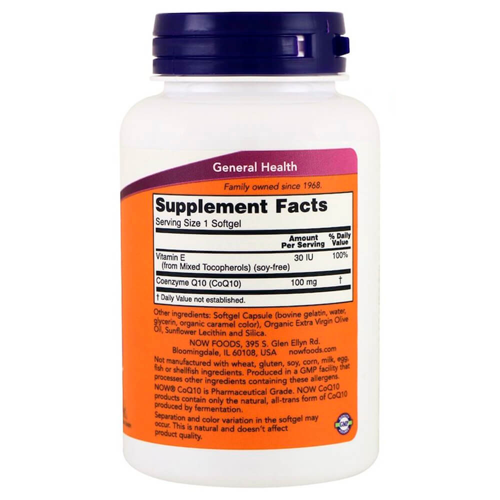 NOW CoQ10 100 mg – важливий елемент в загальному обміні речовин організму людини. Вміст CoQ10 в організмі людини зосереджено в найбільш важливих для життєдіяльності органах (серце, нирки, печінка, селезінка, підшлункова залоза). Достатня кількість коферменту Q10 забезпечує гарне функціонування організму людини в цілому, забезпечує енергообмін.