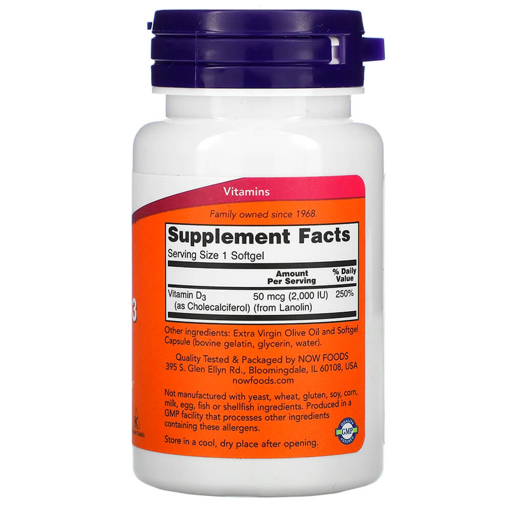 NOW Вітаміни Vitamin D-3, 2 000 IU 120 softgels